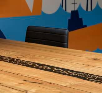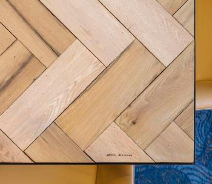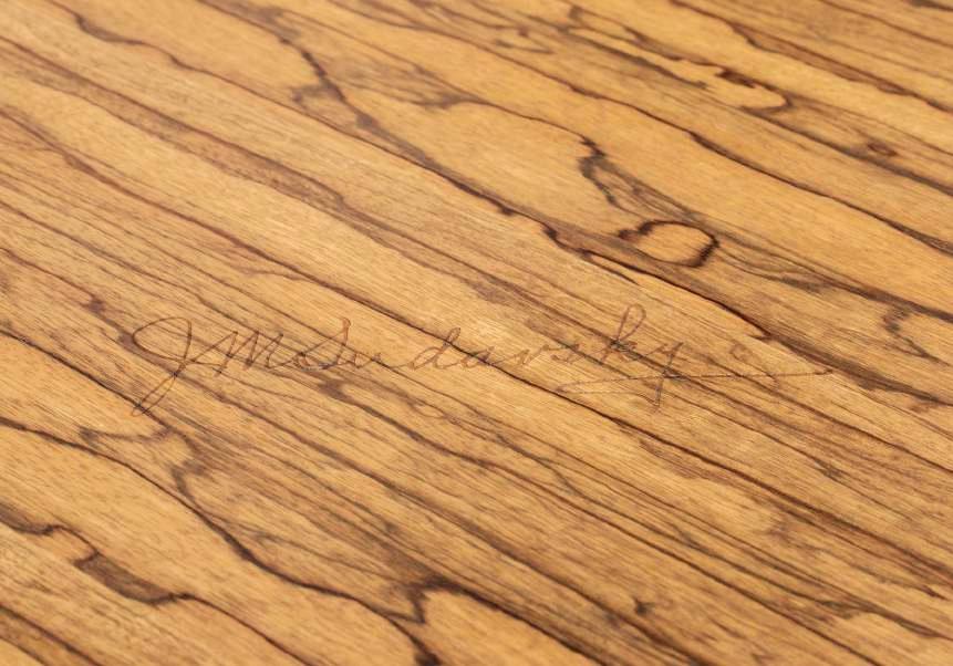 Bottom left: founder’s signature etched into table