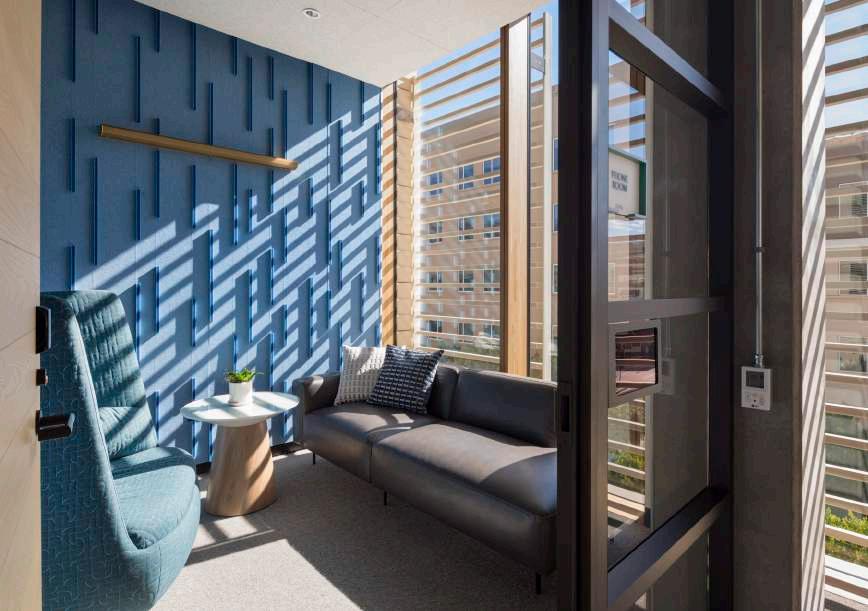portfolio 2022 ALEXANDRIA HQ BRANDING AND DESIGN LEVEL THREE TO FIVE Quiet Rooms L3-QUIET ROOM L4-QUIET ROOM L5-QUIET ROOM POUF Arper Pix OCCASIONAL TABLE Arper Meety MODULAR LOUNGE CHAIR Rockwell Unscripted OTTOMAN Rockwell Unscripted PEDESTAL TABLE Ligne Roset LOUNGE W/ OTTOMAN Hightower Gimbal Highback SIDE TABLE Blu Dot Swole SCONCE RBW Branch (gold) Field color Detail color FROSTED TEXTURED GLASS Bendheim SCONCE RBW Branch (gold) SCONCE RBW Branch (gold) FILZFELT RAIN PATTERN FILZFELT VERTICAL BAR PATTERN Field color Detail color Features + WELL Standard • Applied frit at glass for privacy • Colorful and textural Filzfelt acoustic wallcoverings • Suspended FilzFelt acoustic ceiling • Soft seating with side table • Decorative wall mounted linear sconce, dimmable, powered over ethernet by RBW PROJECT DESCRIPTION: + Office HQ, Pasadena, CA Marketing Presentation PHASE CONTRIBUTION: + Concept Presentation + Design Development + Construction Documentation MEDIUM: + InDesign + Photoshop ff&e presentations