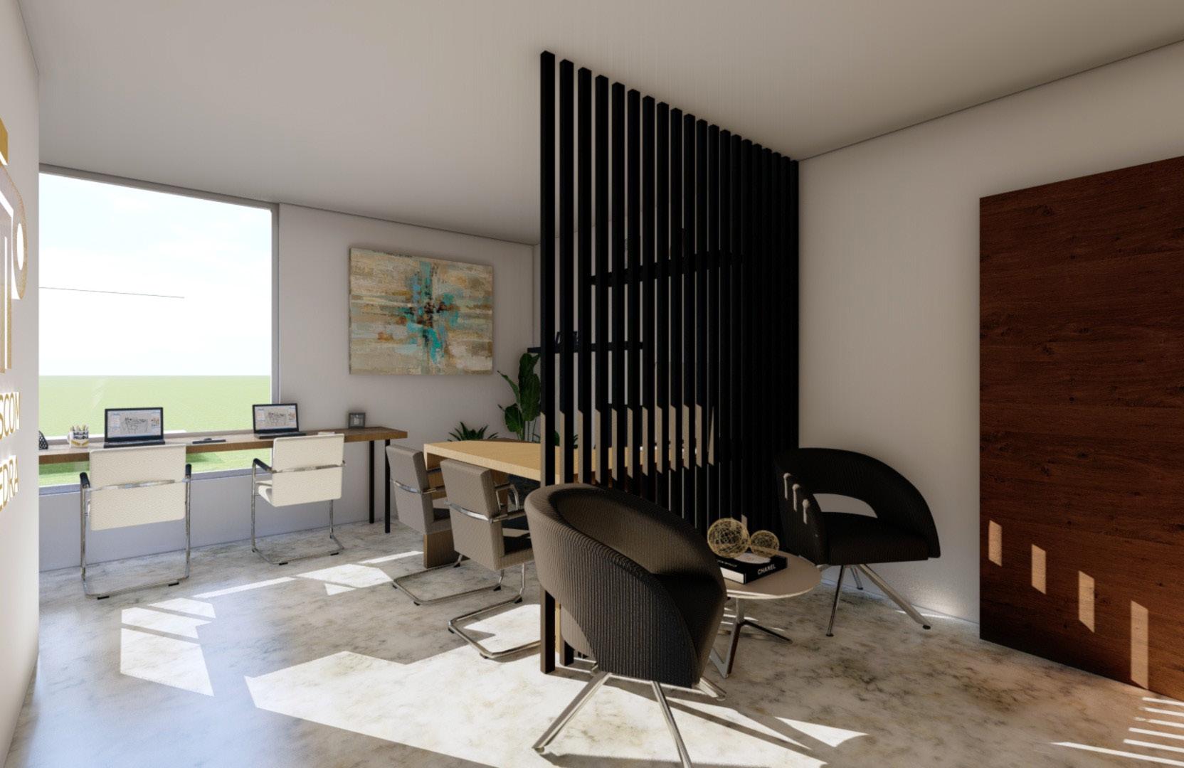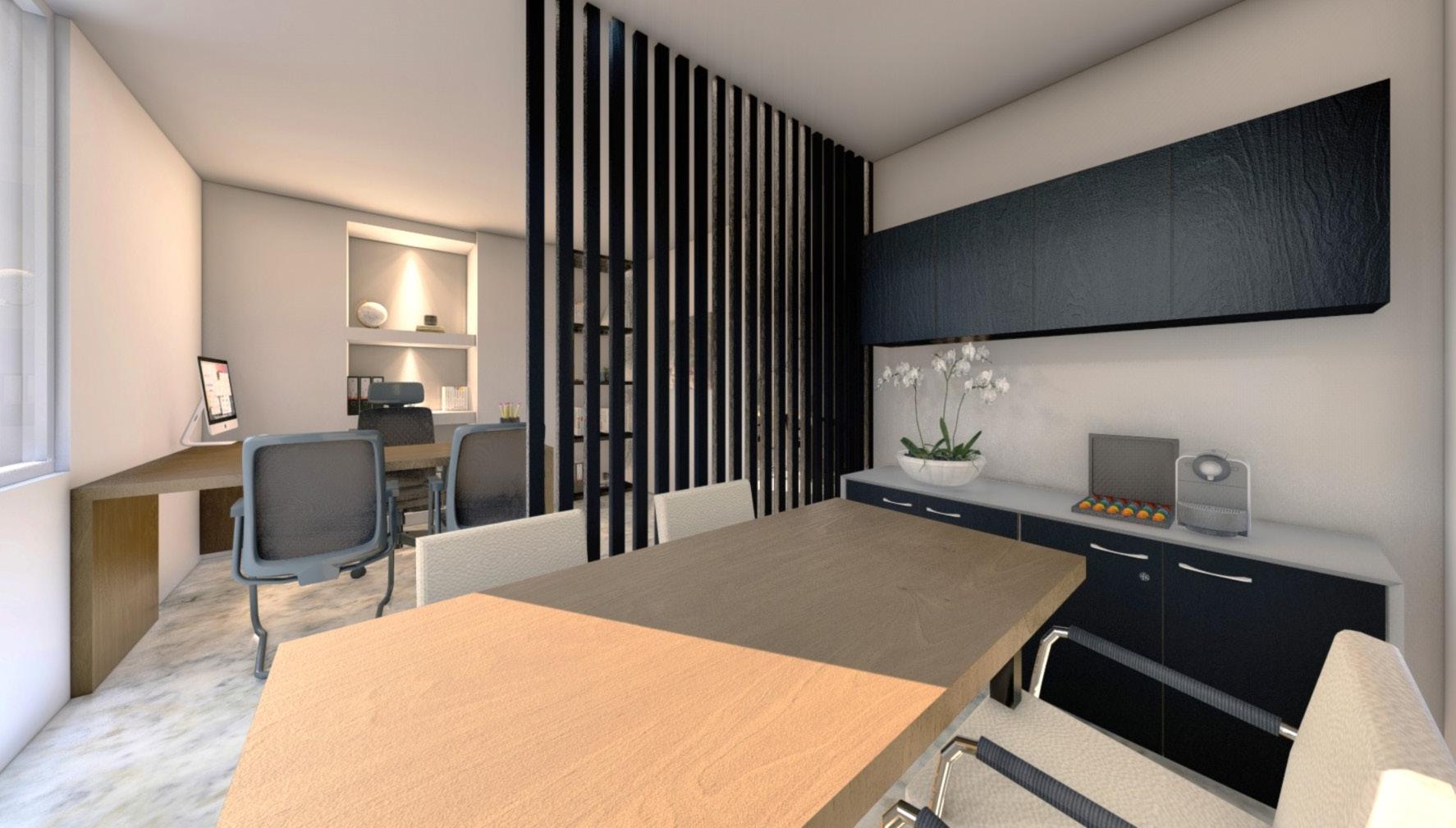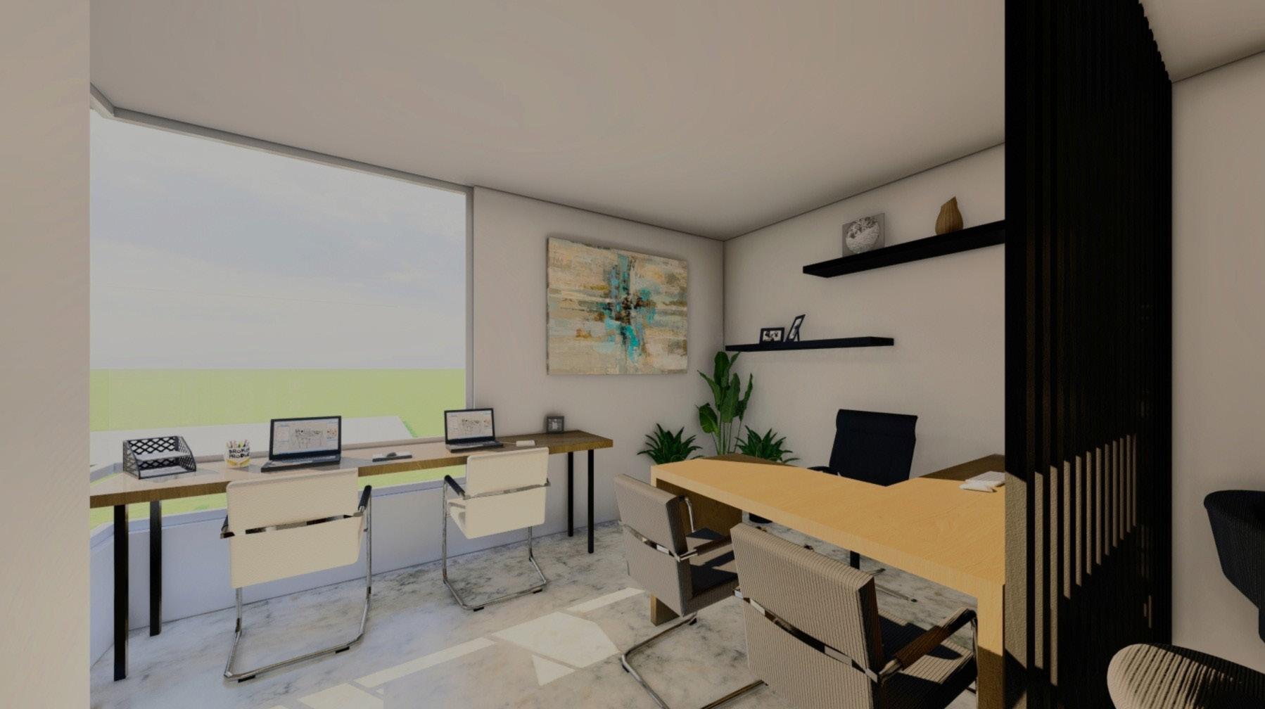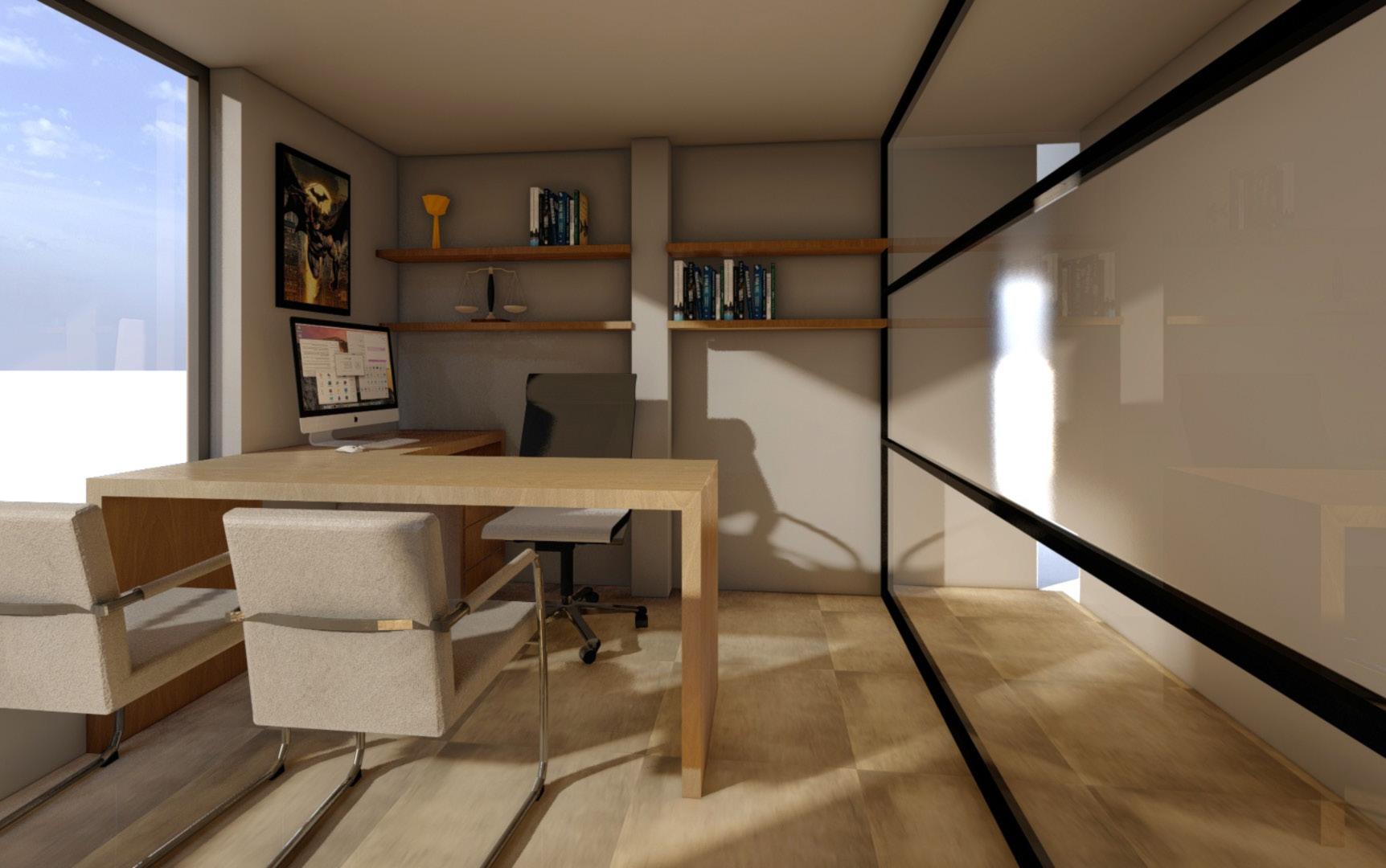 Esta ofina de abogados cuenta con recepción, sala de espera, oficina principal, área de pasantes, sala de reuniones equipada y oficinas privadas para abogados, todo diseñado para un entorno profesional y eficiente.