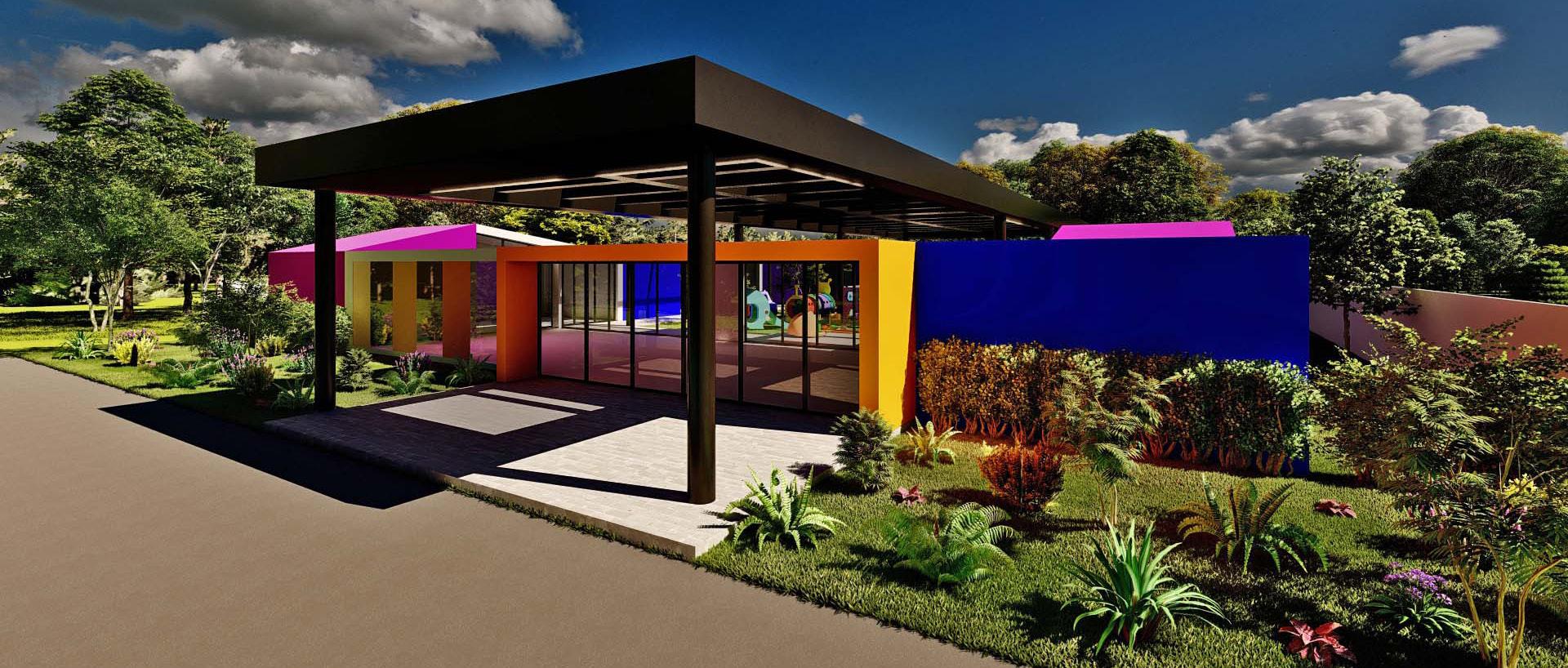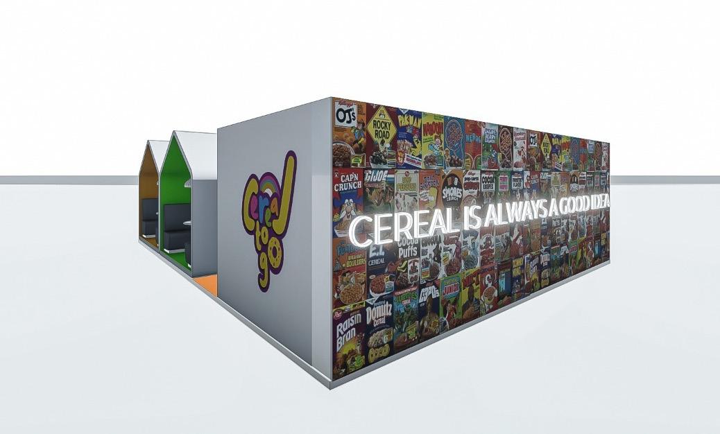 Diseño arquitectónico de stand comercial de cereales enfocado al público publico infantil basado en la paleta de los colores del arcoiris y de los cereales, la idea principal del diseño es resaltar los colores en el mobiliario y en los cereales.