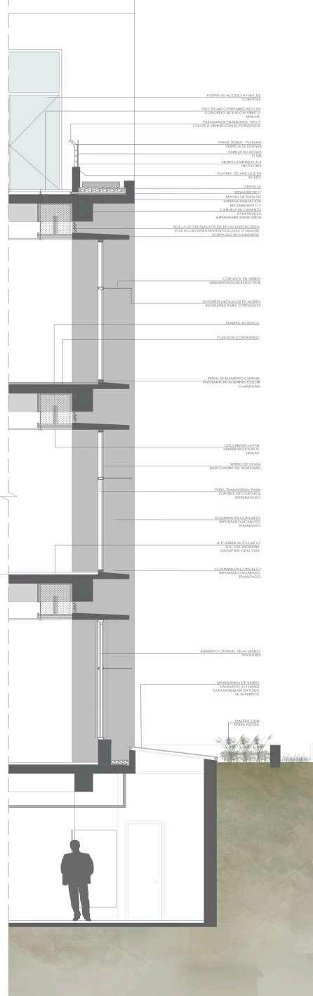 Los cortes permiten entender la distribución interna de los espacios y la relación entre diferentes niveles y elementos del edificio.