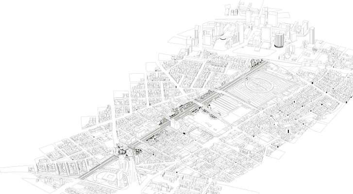 Una vez comprendida la propuesta, la ejecución de cartografías de la sub unidad me permitieron entender a graficar de una manera clara los diferentes elementos de las pre existencia combinados con los de la propuesta, para crear una imagen cohesiva entre la actualidad y la proyección.