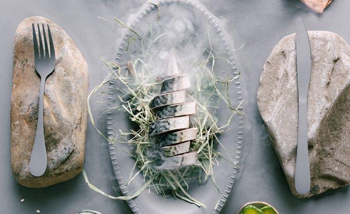 Fig 10. Annie Sprat. (2020). Gastronomical food being placed on a stone plate [Photograph]. Unsplash.