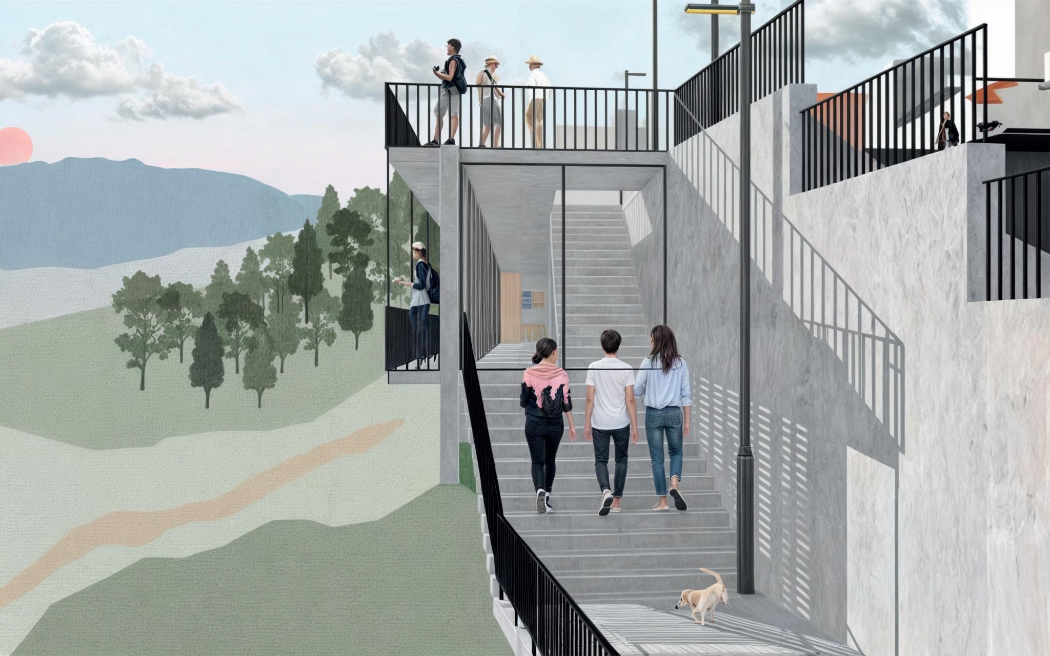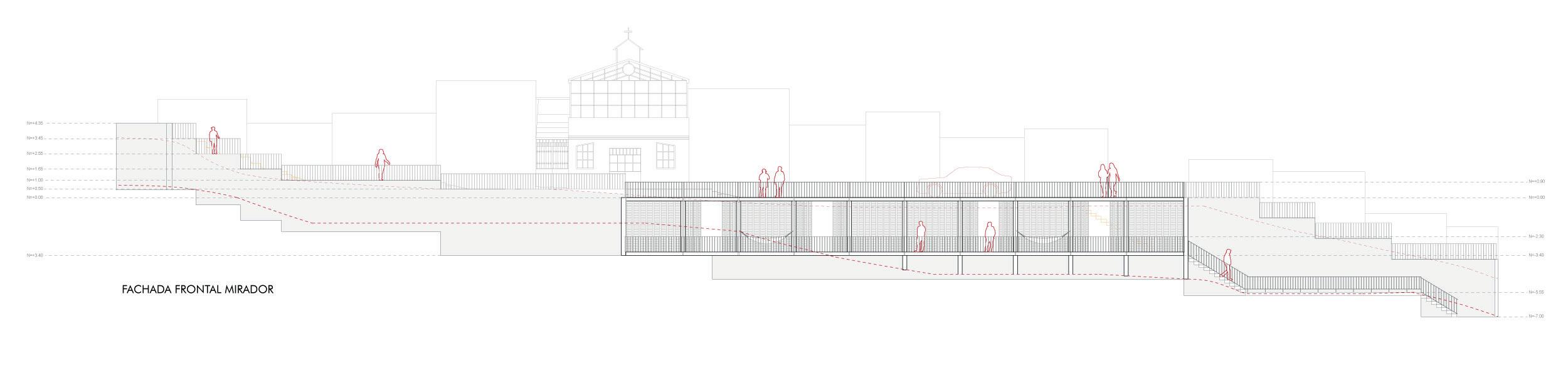 El mirador dentro del barrio Las Palmeras, de la ciudad de Loja, es uno de los lugares más concurridos por sus habitantes, con este precedente, la intención es crear un mirador que a su vez sea un equipamiento útil para la comunidad. La topografía fue uno de los grandes desafiantes para este diseño, pero también esto ayudó a unir la idea de equipamiento y mirador.