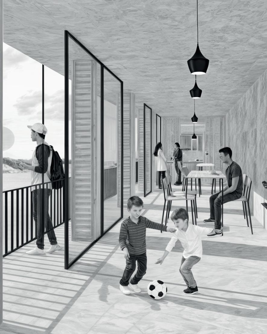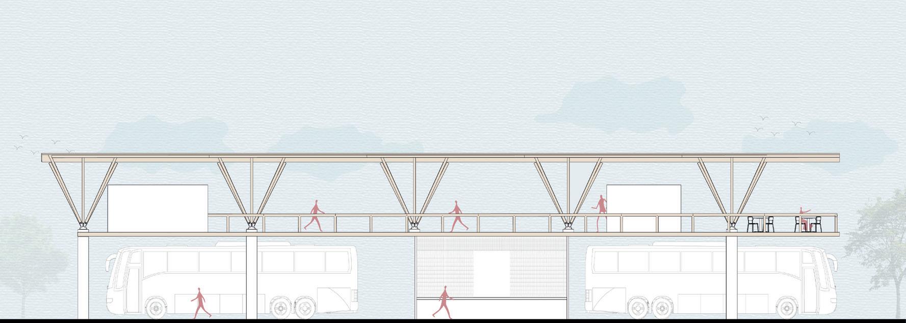 El presente proyecto consiste en el diseño de un Terminal Terrestre para la comuna de Montañita, Ecuador. La infraestructura consta de una planta libre para el estacionamiento de autobuses a corto y largo plazo, junto con espacios de descanso, comercio local, encomiendas, oficinas de taxis y baños en su planta superior. Se ha creado una caminería verde que conecta la carretera con el terminal terrestre, generando un ambiente agradable para los peatones. Asimismo, se ha integrado un estacionamiento privado que, en momentos de baja demanda, se convierte en una plaza multifuncional para la comunidad, ofreciendo actividades recreativas, artísticas y culturales.