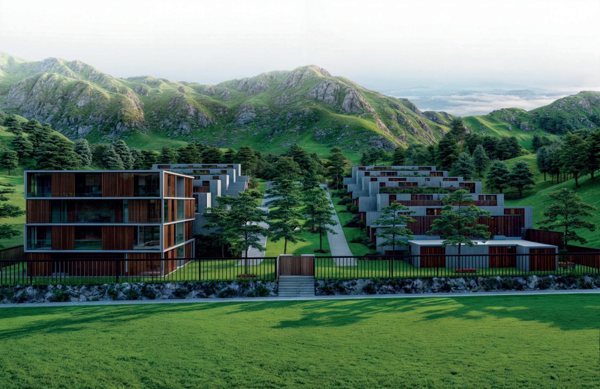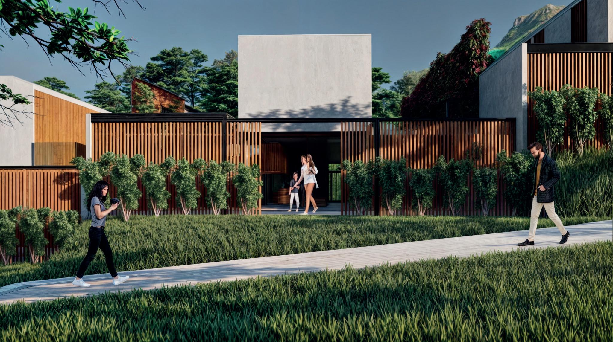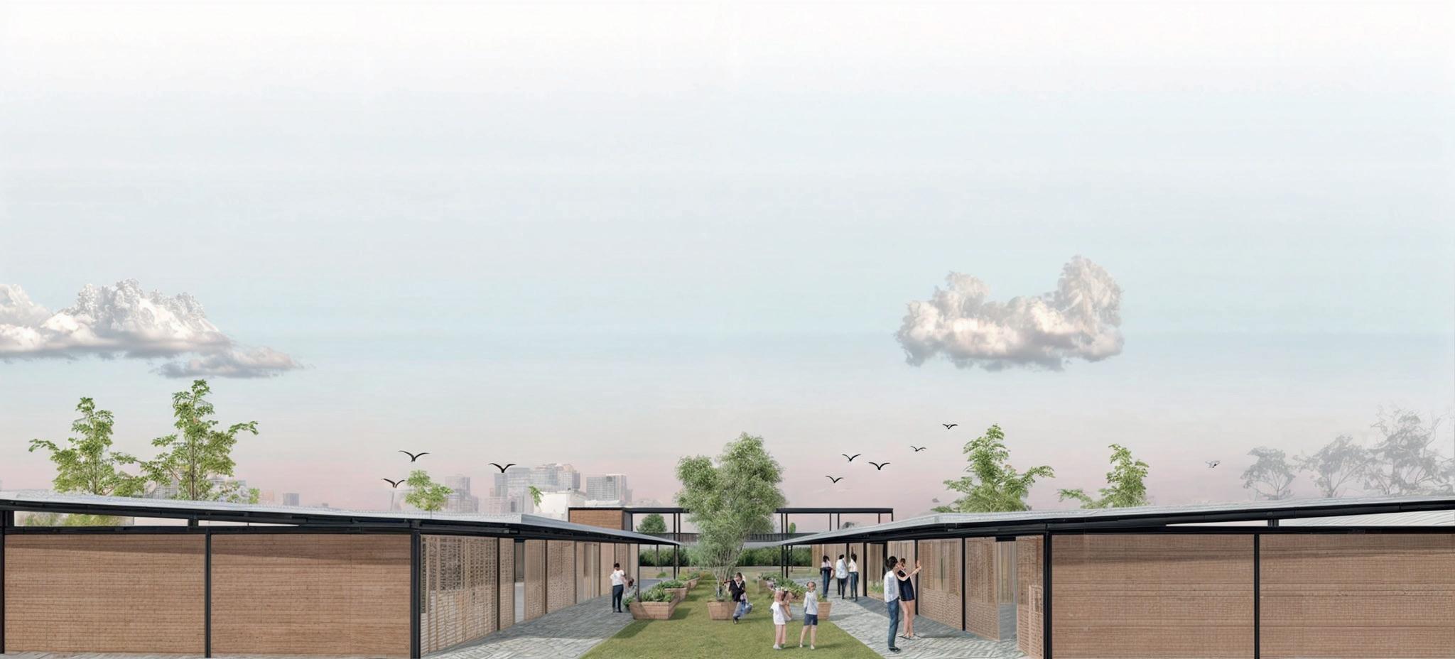 Los materiales que priman en el conjunto son la madera y acero, que en conjunto con la gran vegetación logran crear ambientes adecuados y armoniosos, que no van en contra del contexto del proyecto, pero que imponen una nueva forma de vida que implementa y da mayor importancia a la vida en espacios abiertos, esto también con los patios interiores generados.