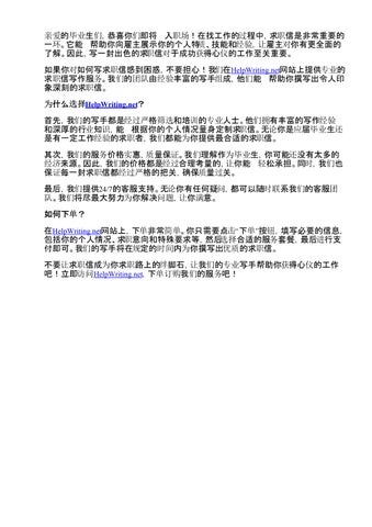 如果你对如何写求职信感到困惑,不要担心!我们在HelpWriting.net网站上提供专业的 求职信写作服务。我们的团队由经验丰富的写手组成,他们能 帮助你撰写出令人印 象深刻的求职信。