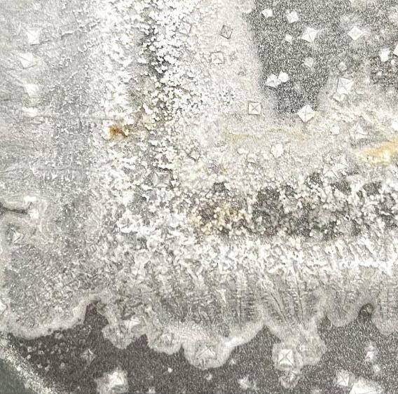 Smaller crystals formed on outside waves. Less defined crystals on inside waves. Consistent saline result