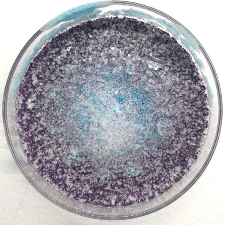Saturated saline with green ink, purple actylic ink, and aluminum aluminium ink Slightly clearer pattern demarcation between blue, purple and dark purple