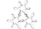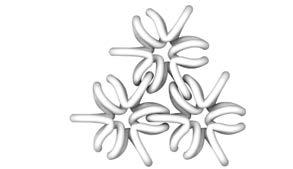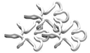 This fabric is compromised of linked units. The units are formed through one continuous looped line with respect to two tilted planes. The geometries of the individual units were derived by studying the composition of the fabric through the lens of a system of connections. Working with a larger number of connections and multiple planes allows for a more complex systematic grid system that anticipates a flexible fabric.