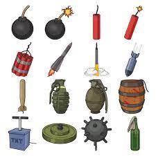 All explosives including explosive devices, detonators, smoke cartridges, grenades, mines, explosive military stores, imitation explosives (unless specifically authorised for training purposes), imitation devices, fireworks, and flares.