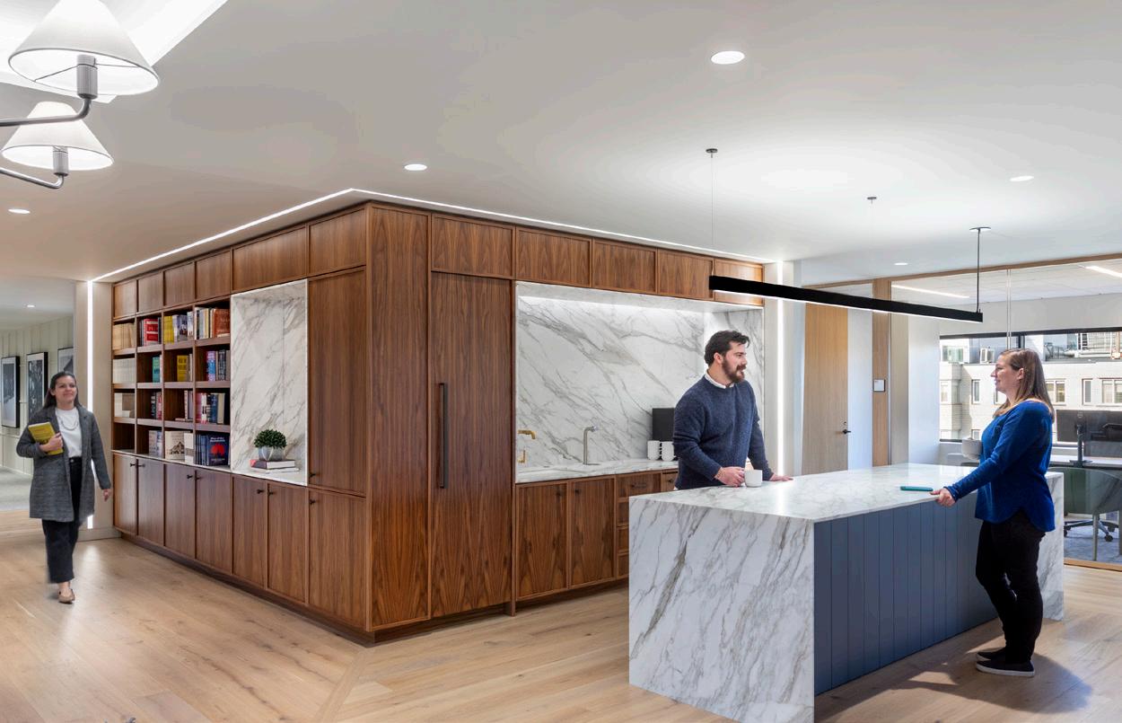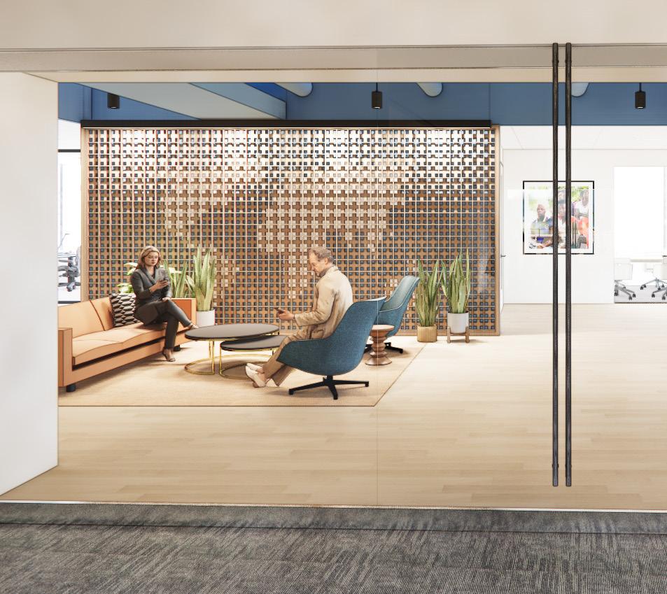 Inspired by Washington, DC's African American Museum and iconic cherry blossoms, this LEED Gold Certified office blends the strong foundation of a flexible activity-based workspace with an integration of wellness, diversity, equity, and community through their vibrant and missiondriven design.