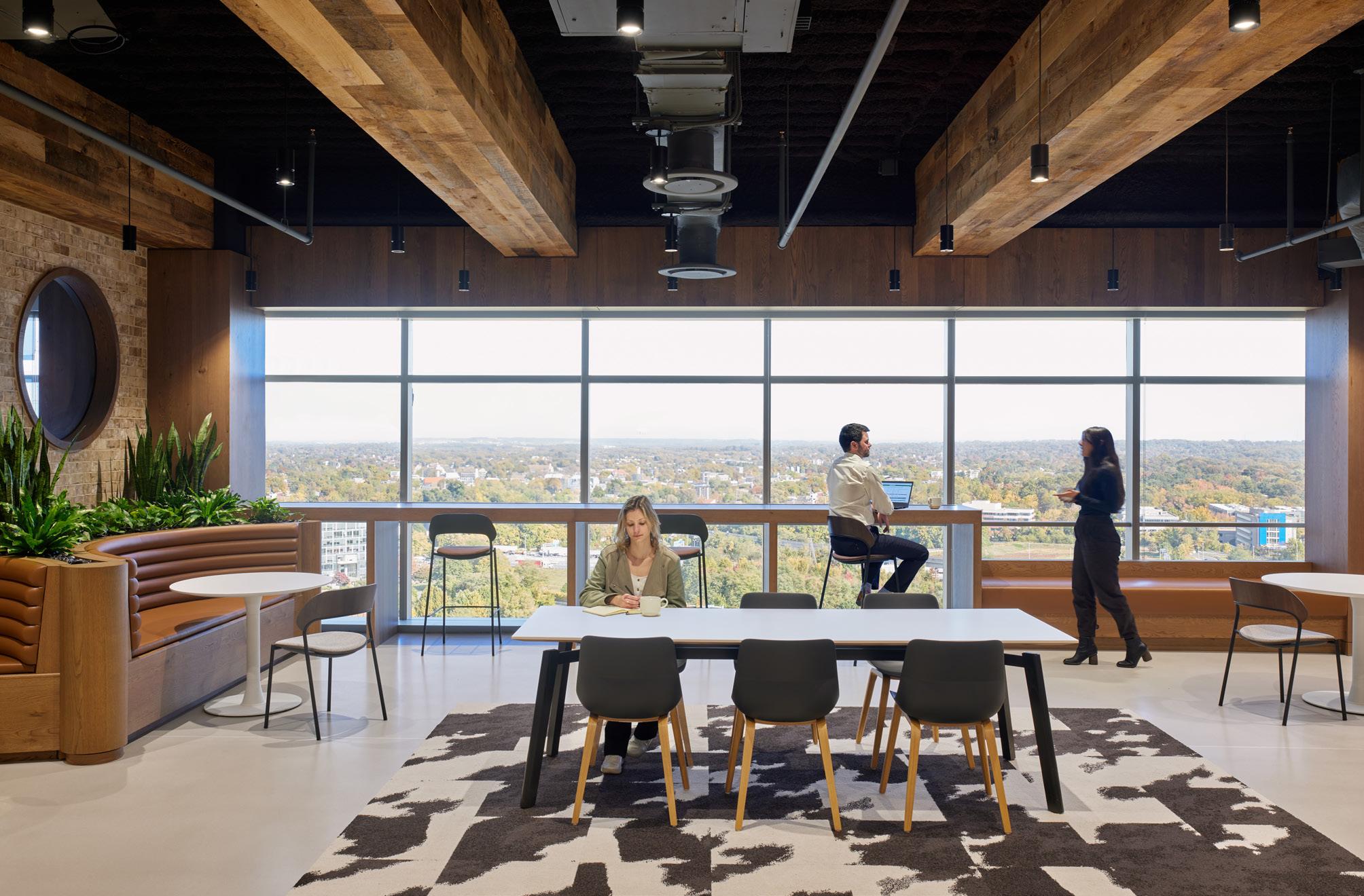 Inspired by Washington, DC's African American Museum and iconic cherry blossoms, this LEED Gold Certified office blends the strong foundation of a flexible activity-based workspace with an integration of wellness, diversity, equity, and community through their vibrant and mission-driven design.