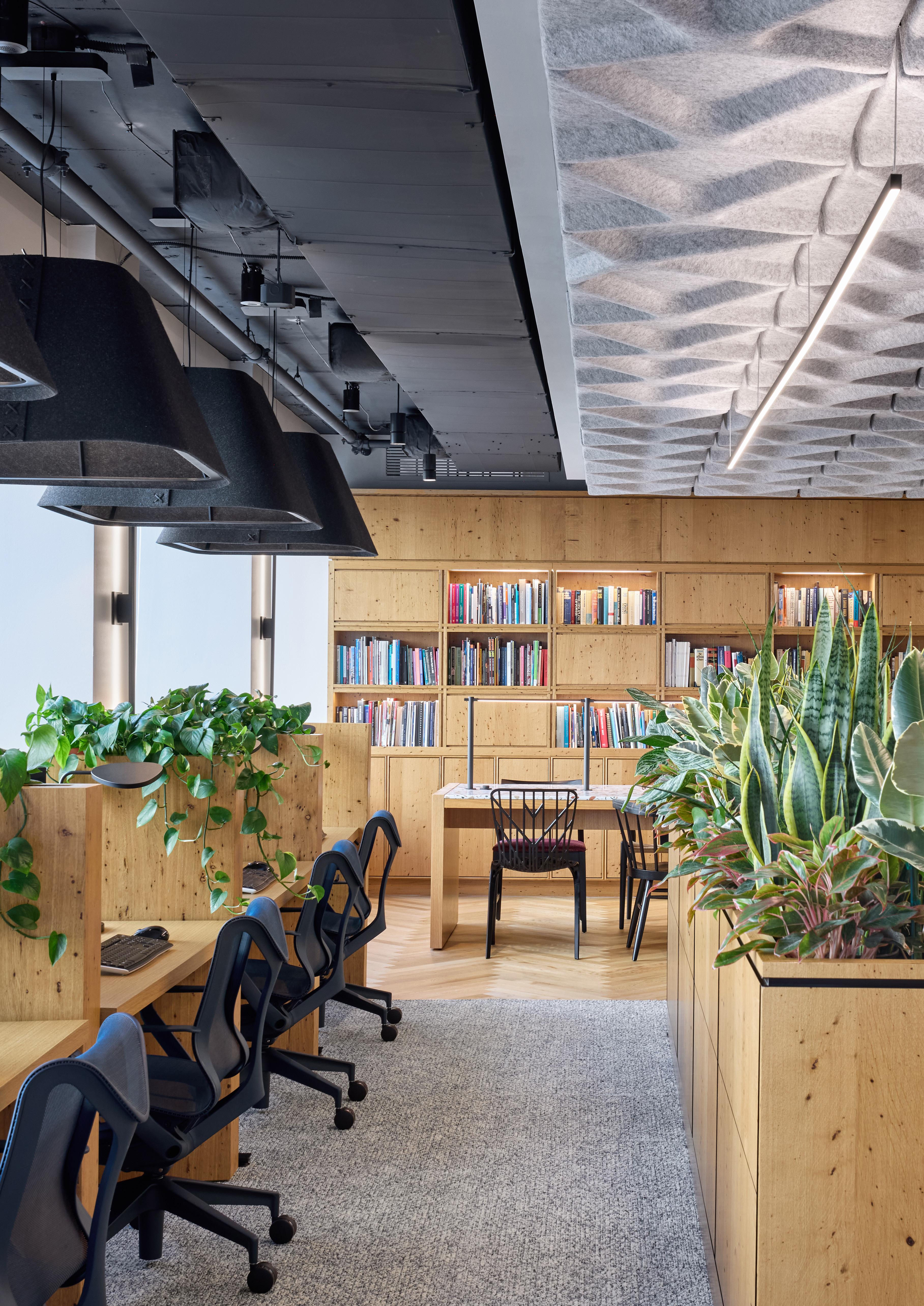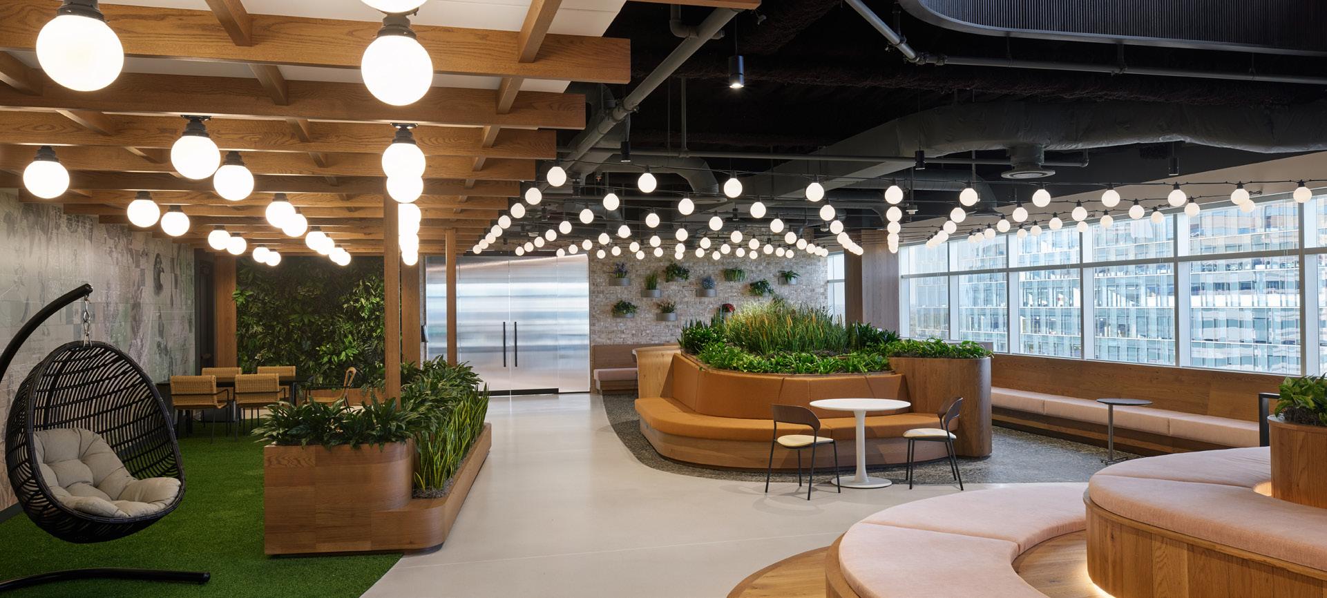 Lounges and collaboration zones hug the windows, turning daylight into a shared resource—not just a perk.