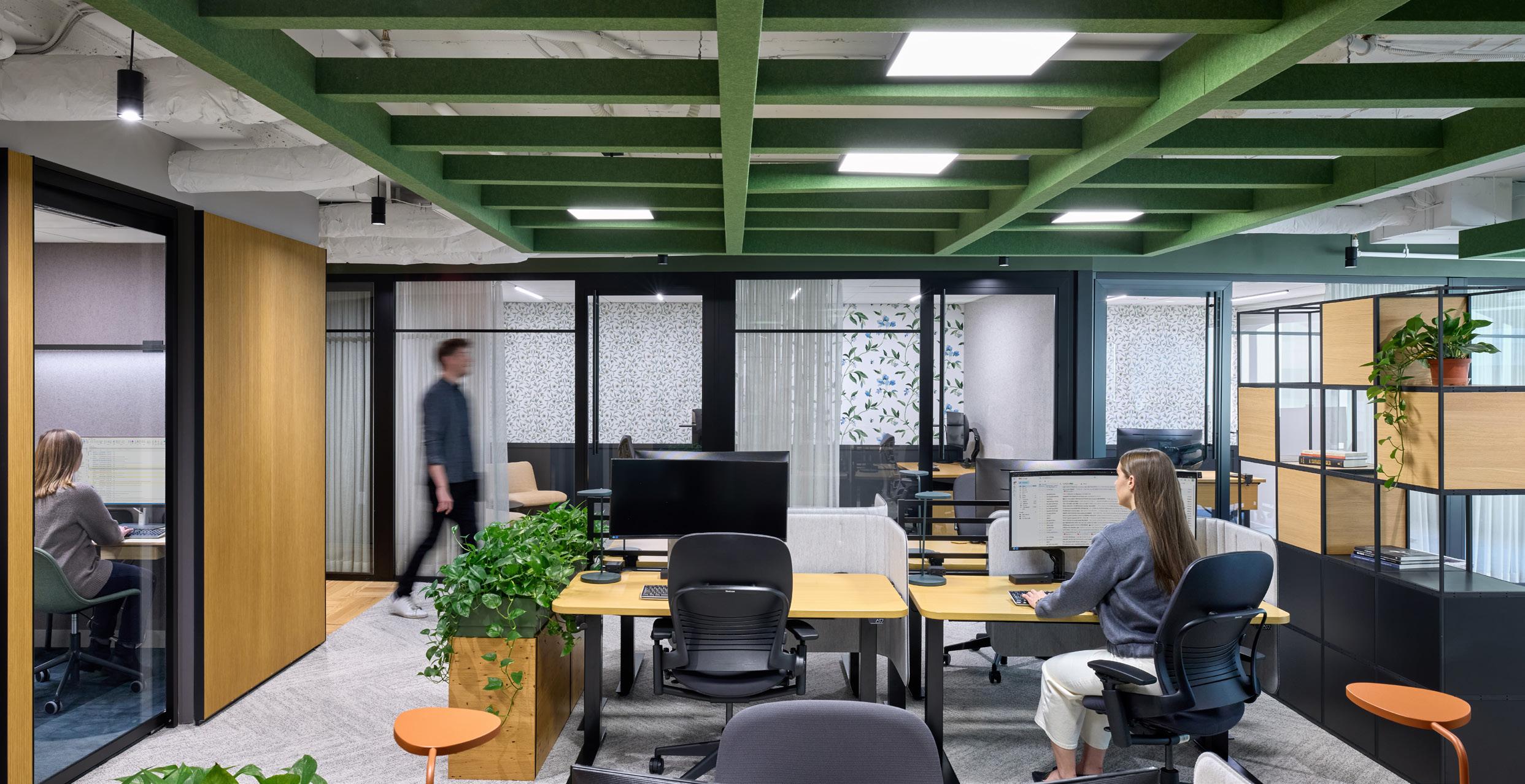 Opened up formerly closed-off areas to create a mix of casual and semi-private zones, supporting both heads-down work and informal collaboration across the floor.