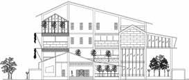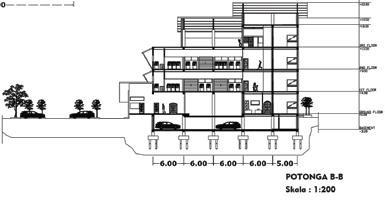 Bentuk bangunan ‘U’ dipecah beberapa bagian dengan ketinggian tiap massa yang berbeda.