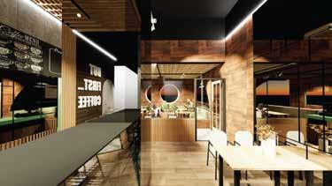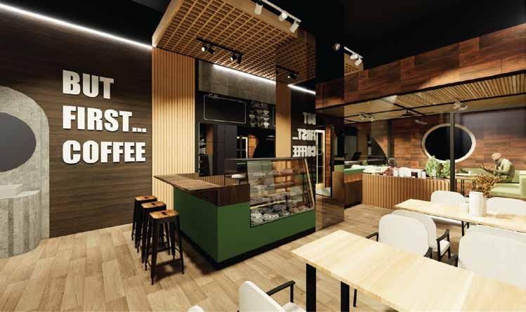 Konsep semi-outdoor cafe yang ditujukan selain sebagai tempat makan namun juga sebagai tempat refreshing bagi kalangan pekerja kantor dikala menghabiskan waktu istirahat ditengah - tengah padatnya pekerjaan. Penggunaan motif dan warna kayu disertai plafond yang terbuat dari susunan bambu menciptakan suasana alam ditengah - tengah gedung perkantoran yang padat aktivitas.