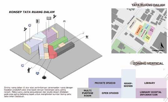 Studio Desain Kolaboratif sebagai ruang kerja bersama yang mendukung produktivitas dan kreativitas namun tanpa mengurangi interaksi sosial bagi sesama pelaku desain di era digitalisasi ini. Kolaboratif yang dimaksud disini ditujukan kepada kolaborasi aktivitas desain manual dan desain digital.