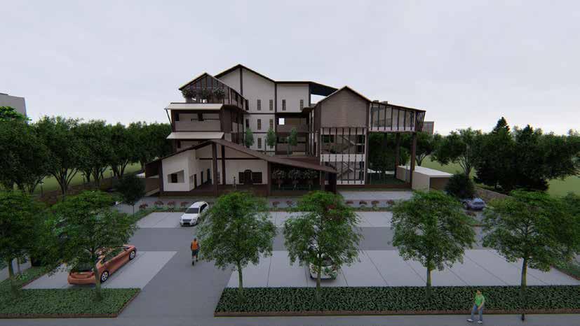 Healing Architecture agar, diposisikan agar dapat bersinergi terhadap zoning ruang di dalam tapak. Layout massa ruang disusun dengan pengadaan void bangunan yang kemudian dimanfaatkan sebagai area penghijauan dan mencitakan sirkulasi pencahayaan dan penghawaan alami pada ruang - ruang tertentu.