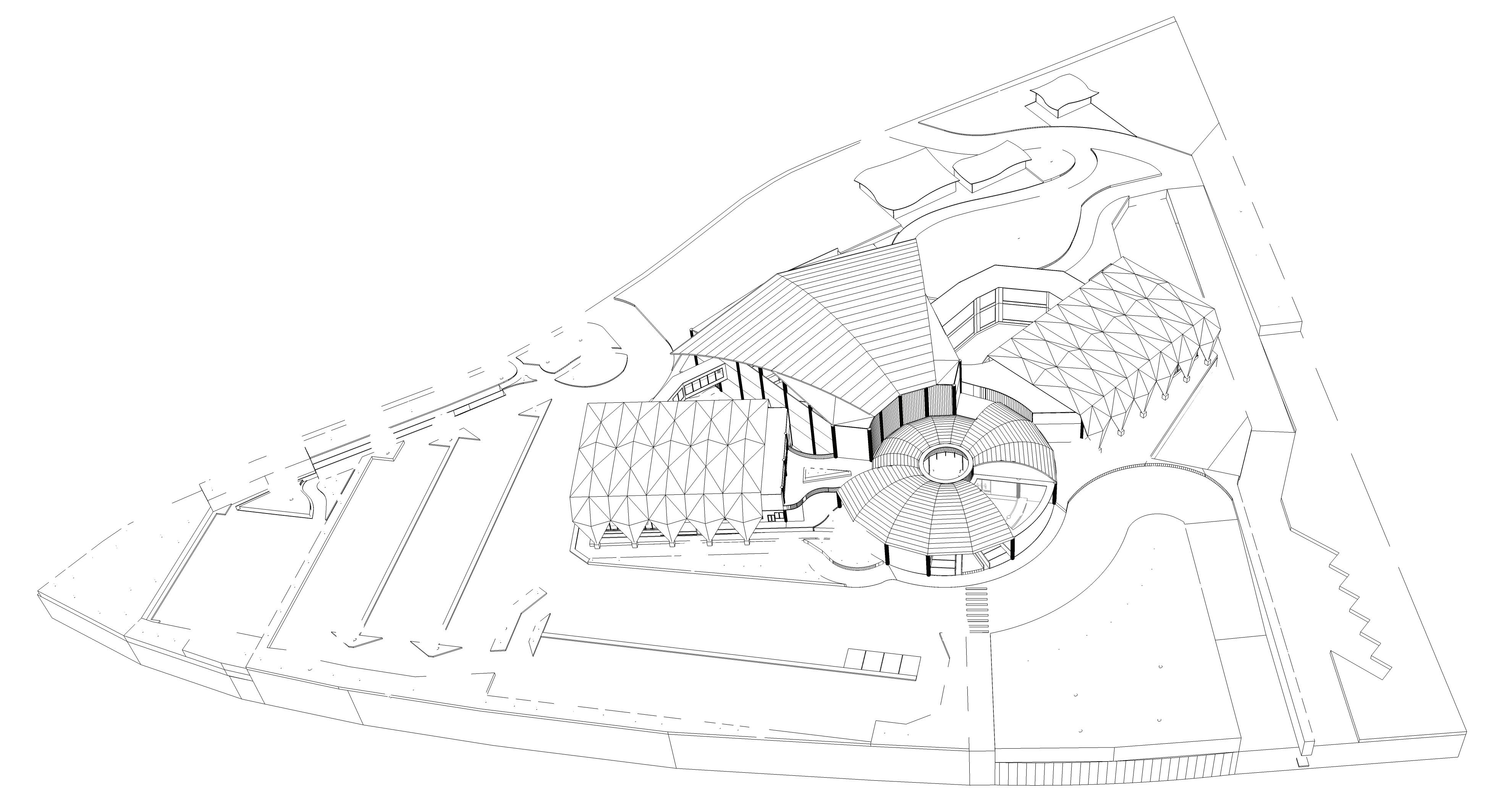 Bentuk kubus terus mengalami pengurangan massa hingga bentuk bangunan menyerupai letter ‘U’.