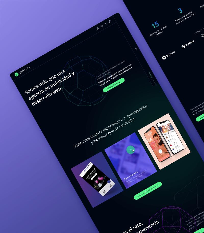 Se rediseñó el branding de Geek Vibes, y a partir de ello, se generaron master graphics para todos sus aplicativos digitales e impresos, Ui nuevo, Design system e iconografía, que fue aplicado en su nuevo website y sigue vigente.
