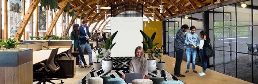 El espacio de trabajo colaborativo va di rijido a diseñadores gráficos, arquitectos y comunicadores. Se considera dejar un planta libre con espacios jifos e informa les de trabajo