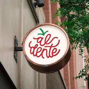 Al dente is a restaurant that specializes in authentic Italian cuisine. This name comes from the term al dente, referring to the ideal consistency of cooked pasta. Italian cuisine focuses on simplicity. Some dishes will only require four ingredients. This project aims to design a pictorial over letter mark logo that represents the restaurant. This type of logo is more dominant in the pictorial side while still based on typography. As you can see, the shape of this logo resembles a ripe tomato. The custom cursive lettering has a consistent stroke and is quite flexible to mimic the texture of cooked spaghetti.