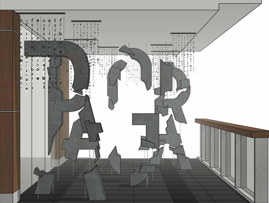 This paticular project derives from a literature festival poster called ‘PAGAR’. The event promotes literature from various countries that are done by numerous writers. The letters P, A, G, A & R are divided into smaller chunks. Then these fragments will be given a rubble effect. When visitors see this installation from the front, of course, the impression that will emerge is the robustness and complexity. The solid impression can be seen from the letter structure that almost fills the installation area in height and depth. However, when traced, the path is not difficult to pass because each letter has been cut into small fragments (contradiction figures).