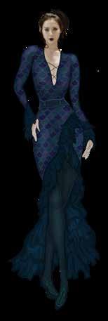 Nagini is sympathetic and graceful character, but she is imprisoned. Tambal and Ceplok Grompol’s batik motifs are used to describe her personality. The motif is supplemented with objects that represent her personality, such as roses, chains, snakes, and thorns. All of these elements are then encapsuled in snake scale pattern. The combination of objects and batik motifs is combined with darker colors that represent Nagini’s character.