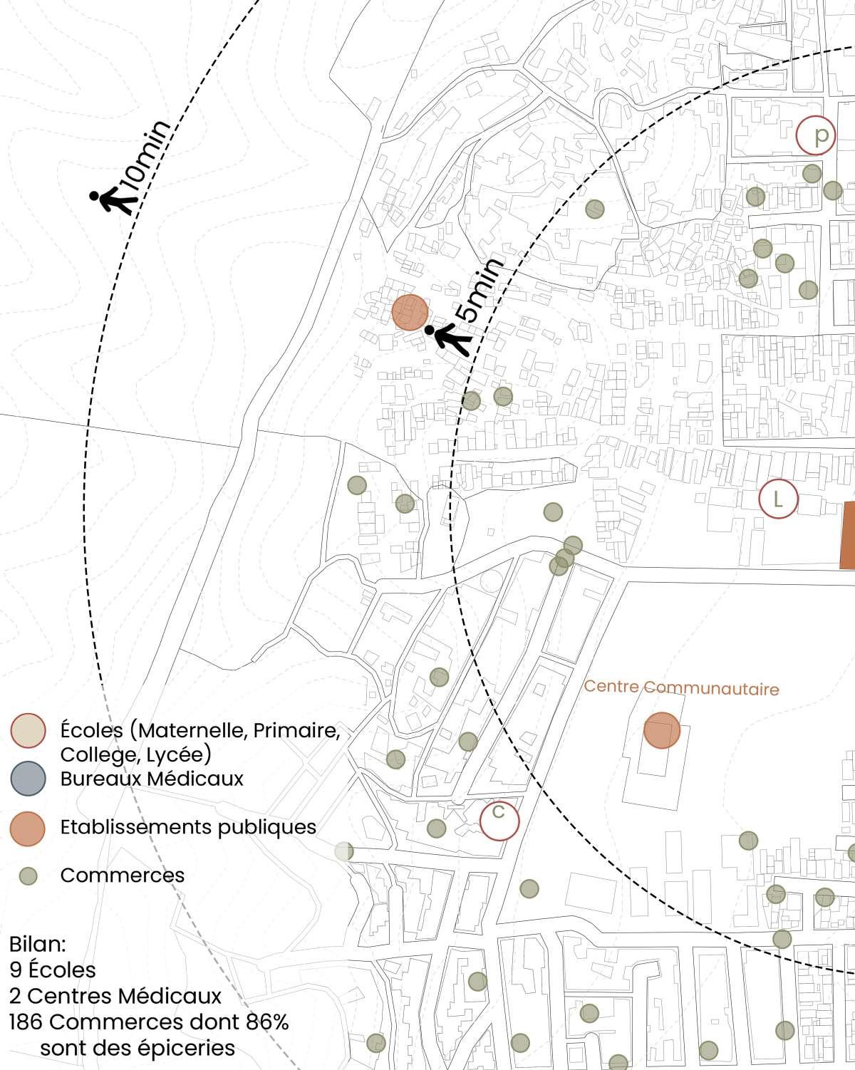 On peut voir sur le plan du site que celui-ci est situé à deux parcelles de l’un des centres religieux les plus importants de la ville, la Basilique de Guadalupe, cette zone étant réputée pour sa dévotion. C’est aussi le principal point de rencontre du quartier, car on y trouve non seulement une église et une place publique, mais aussi de nombreux stands de nourriture, de vêtements et de meubles fabriqués par les habitants du quartier euxmêmes. Il y a également beaucoup de petites entreprises, pour la plupart familiales, dans la région. Il y a également un grand nombre d’écoles dans la région.