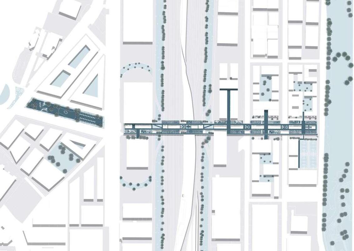 Pour que le parc surélevé soit plus qu’un simple passage, il a été divisé en quadrants où des boutiques et des espaces ouverts ont été ajoutés pour compléter les différents quartiers.