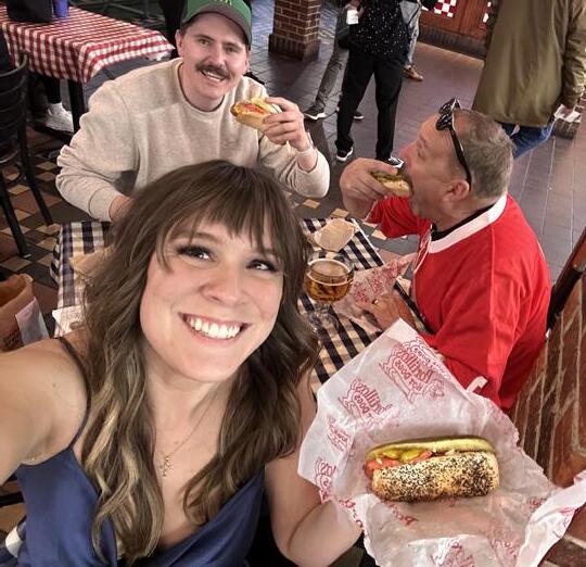 Baseball games pair perfectly with Baylee’s passion for hot dogs. “I love hot dogs. We almost served them at our wedding because I love them so much,” Baylee said. “There are so many ways to dress them up. When we go to Chicago for bridal markets, a Chicago Dog is a must. You can’t beat a Chicago Dog in Chicago! Every baseball stadium has their own special hot dog you get to try. I feel like you can’t go wrong with it.” Her love of hot dogs started when she was growing up and her dad cooked bratwursts on Friday nights. “Hot dogs have always been there for me,” she chuckled.