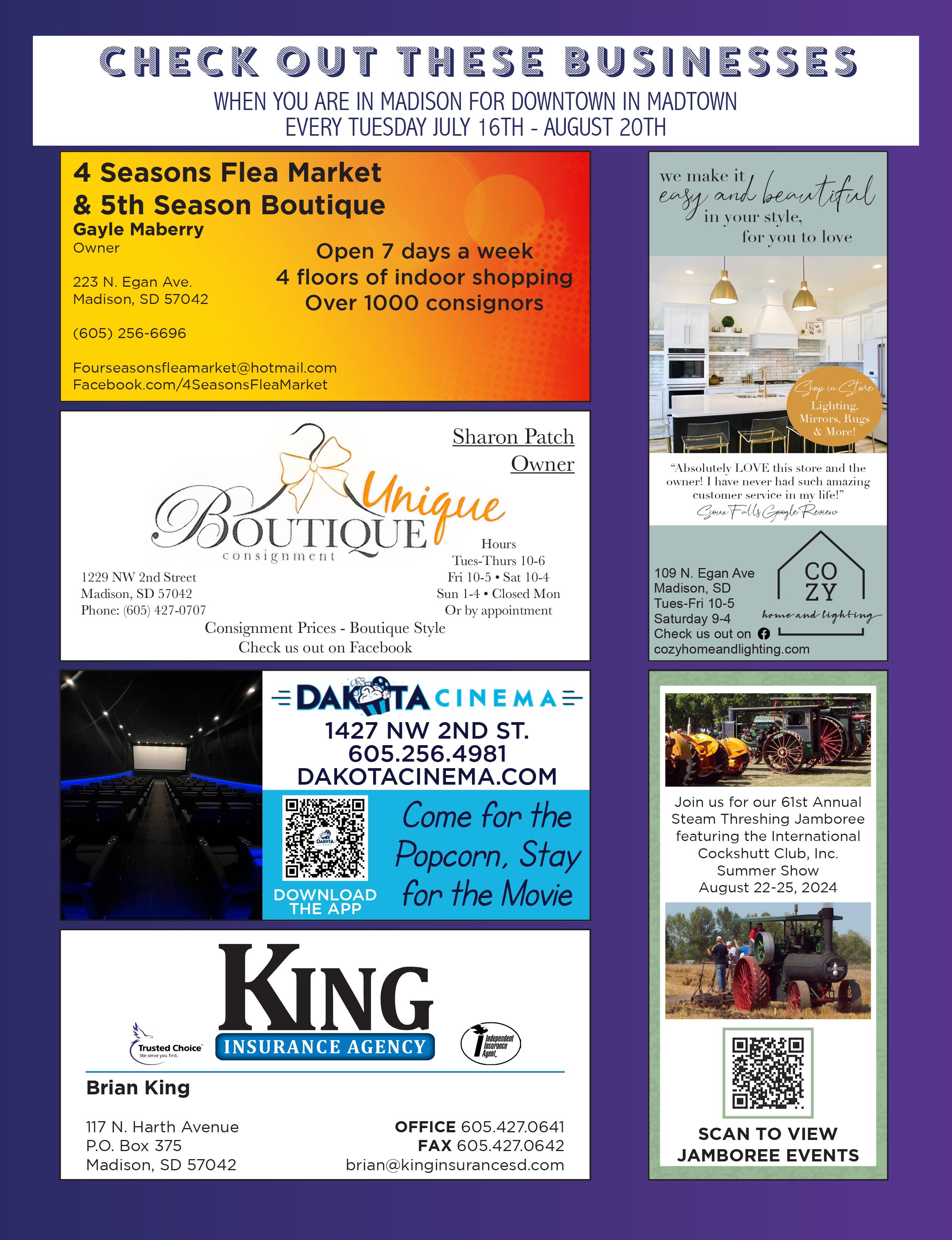Each week, DownTown in MadTown will start at 6:00 p.m. and go until 9:00 p.m. featuring a band, food vendors, shopping options, and kids’ activities. Each week will also have a specific theme, including Classic Car Night and National Night Out. A few of the kids’ activities planned are inflatables, face painting, sanctioned pedal pull on July 23rd, and a strider obstacle course the last four weeks.