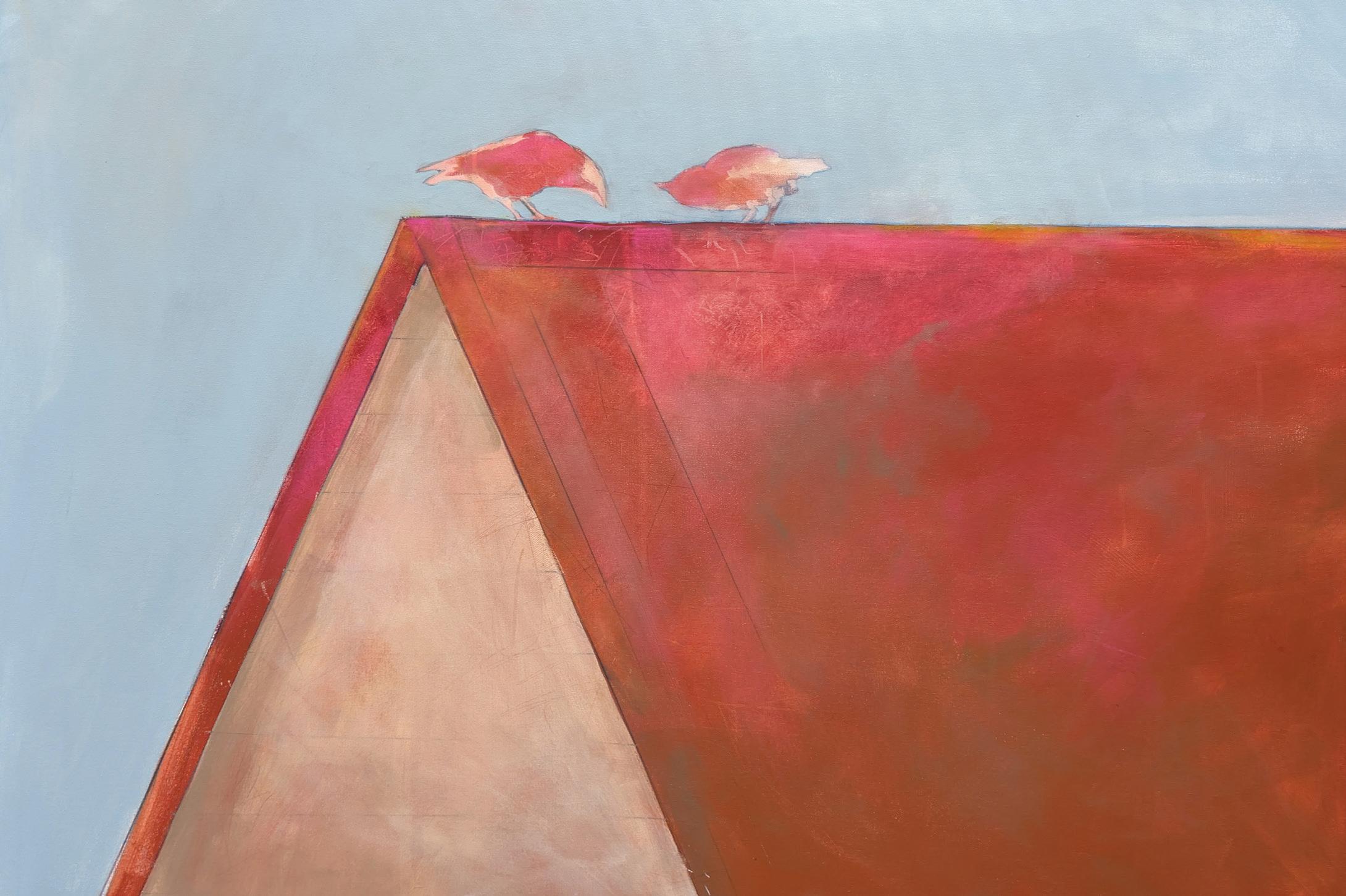 While inspired by the physical land forms of the Midwest, Linn’s work does not aim to portray them literally. “Rather than presenting a factual reality, I fabricate an illusion,” she notes. Her paintings explore the spaces between memory and imagination. Through this abstract lens, she investigates the essence of landscape and architecture rather than their surface details. Her work often allows the viewers to reflect and discover connections to the scene she evokes.