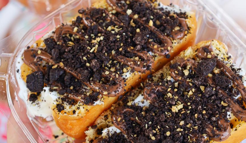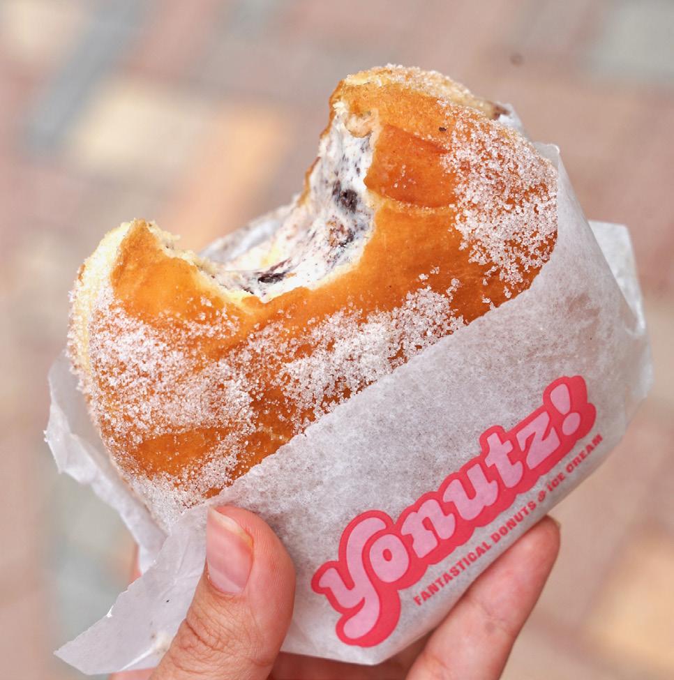 The Signature Smash Yonutz Donuts and Ice Cream’s signature Smash takes two classics and transforms them into something entirely new: a soft, fluffy doughnut sliced open, filled with creamy ice cream, and layered with toppings from crunchy pearls to chocolate drizzle and pressed warm until it becomes a gooey, melty masterpiece. For owner Kim Cerwick, part of the appeal is that there’s literally something for every taste. Smaller bites? The mini doughnuts deliver concentrated hits of sweet bliss.