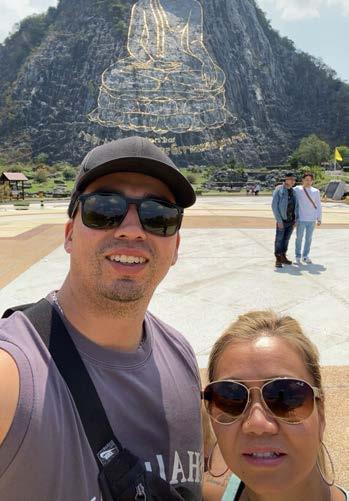 Photos Left to Right: Kelly with her mom, aunt, and uncle in Florida in 2022; Kelly and her son Benjamin at a West Central football game; Traveling in Thailand in 2023