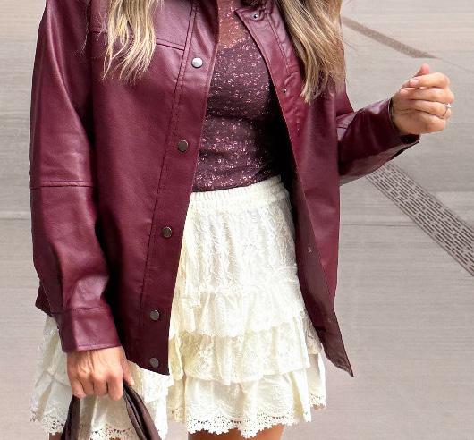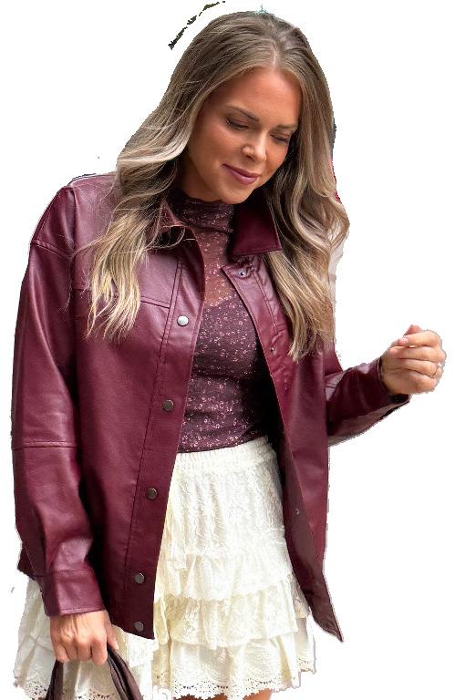 Feel cozy, but make it cute! This one has faux leather piping on it, elevating it from a traditional sherpa to much more! This style is the perfect piece for elevating your athleisure. Think about throwing this on over your two-piece sets or wearing this over your sports team hoodie at the game.