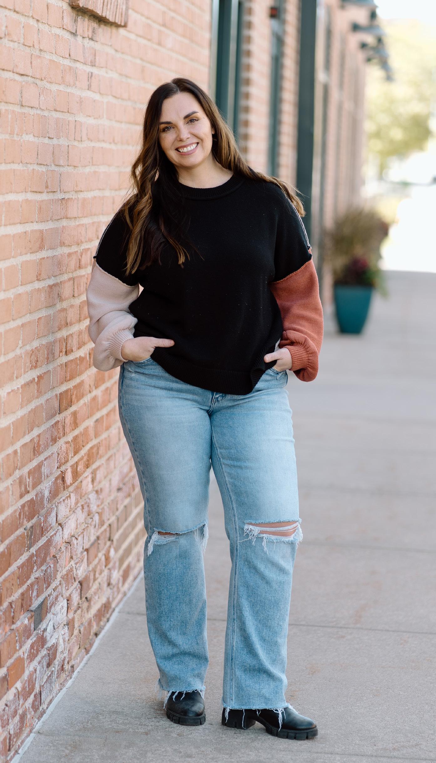 Bubble hem is trending not only in outerwear but also in tops and skirts, too! It’s a fun twist to elevate a top and create dimension without being overpowering. This is the perfect piece to wear with the basics you already own in your closet.