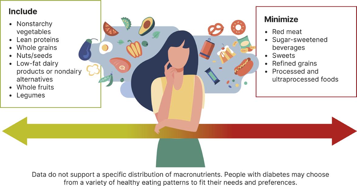 The ADA aims to make it easier for people to eat the right foods and live well. "Use the Diabetes Plate as your roadmap for healthy eating," Toby encourages. "Aim for half your 9-inch plate filled with non-starchy vegetables like leafy greens, tomatoes, cucumbers, green beans, carrots, and celery; about one-quarter from lean protein such as skinless poultry, fish, lean beef, soy, nuts, and seeds; one-quarter with quality carbohydrates including starchy vegetables, beans, fruit, whole grains, milk, or yogurt; and water or a low-calorie beverage." Combining lean protein with carbohydrates may slow absorption and help maintain target blood glucose levels. Effective eating patterns include Mediterranean-style, DASH, low-carbohydrate, vegetarian, or low-fat approaches.