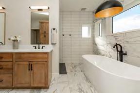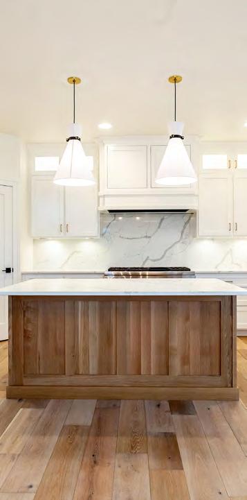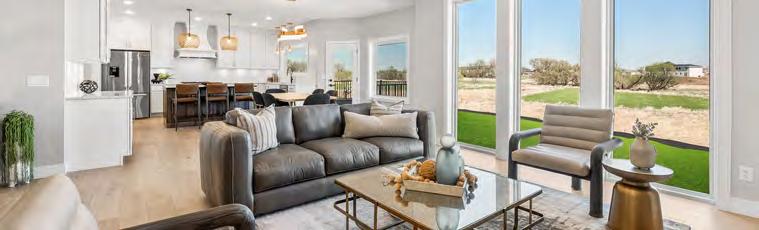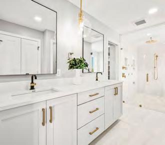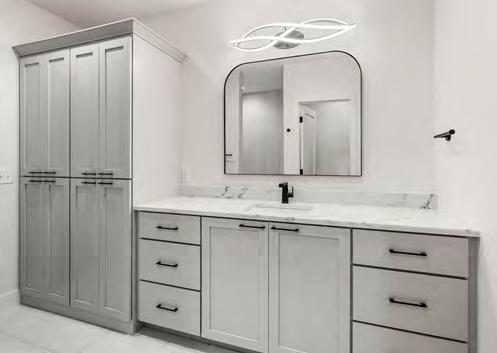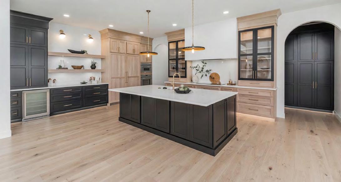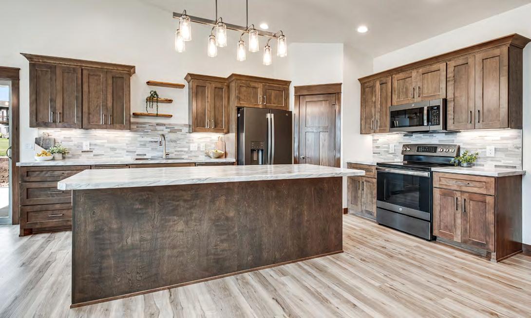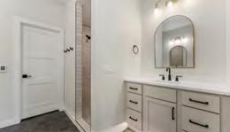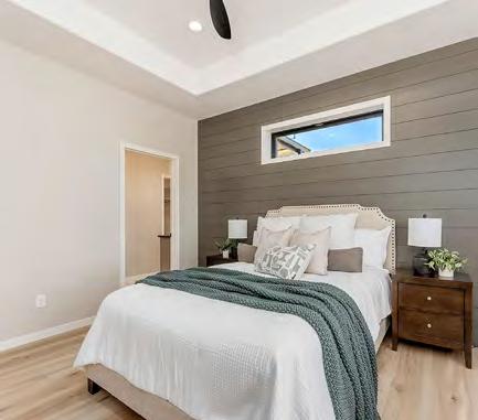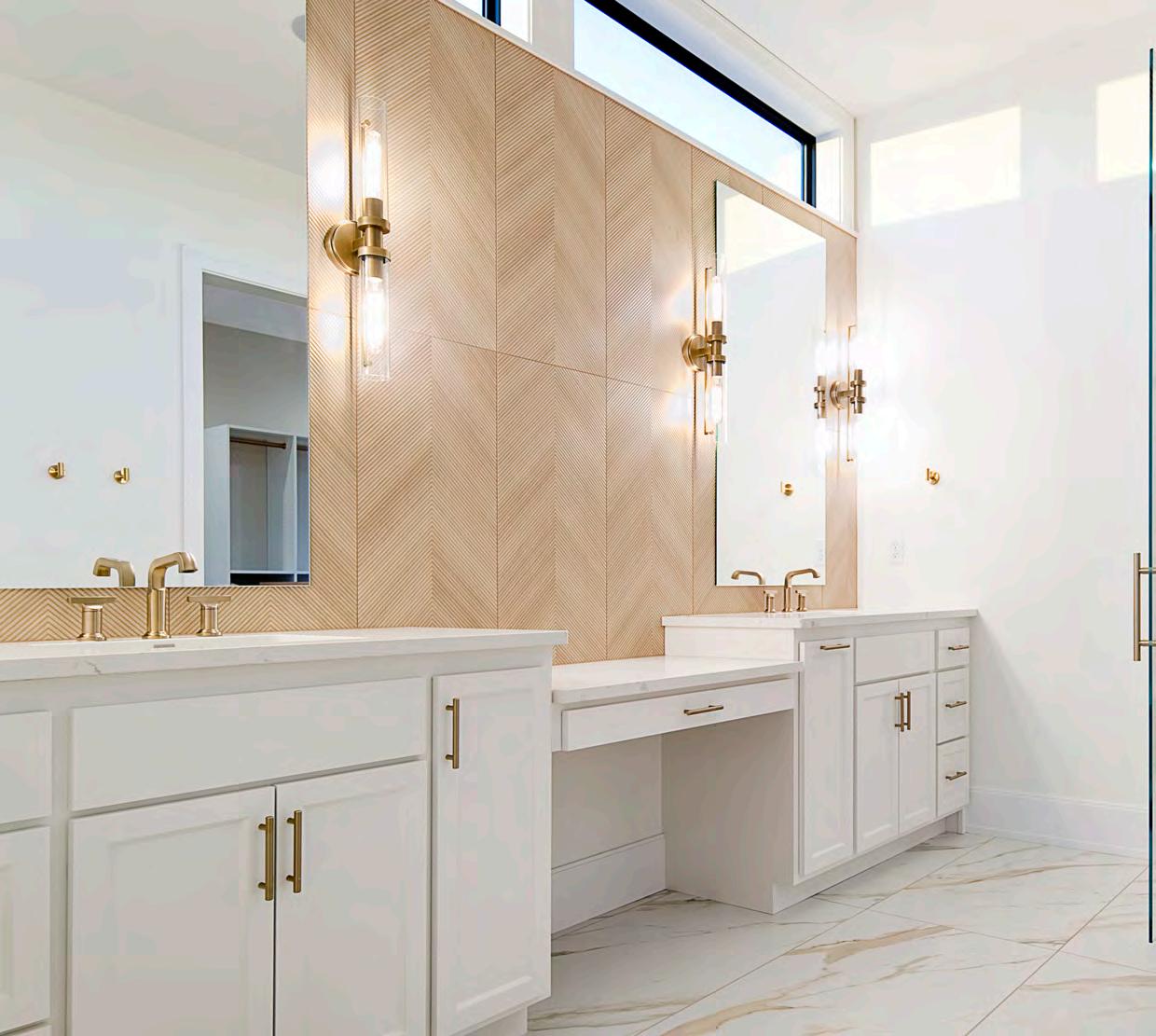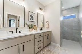 functional layout and a place that felt right for their lifestyle. They started with a floor plan that was zero entry, allowing all ages to use the home without barriers. The home also features an incredible dual suite configuration with the homeowners’ primary suite located on one side of the home and the other tucked thoughtfully on the opposite side, providing privacy and flexibility for multi-generational living or guest accommodations.