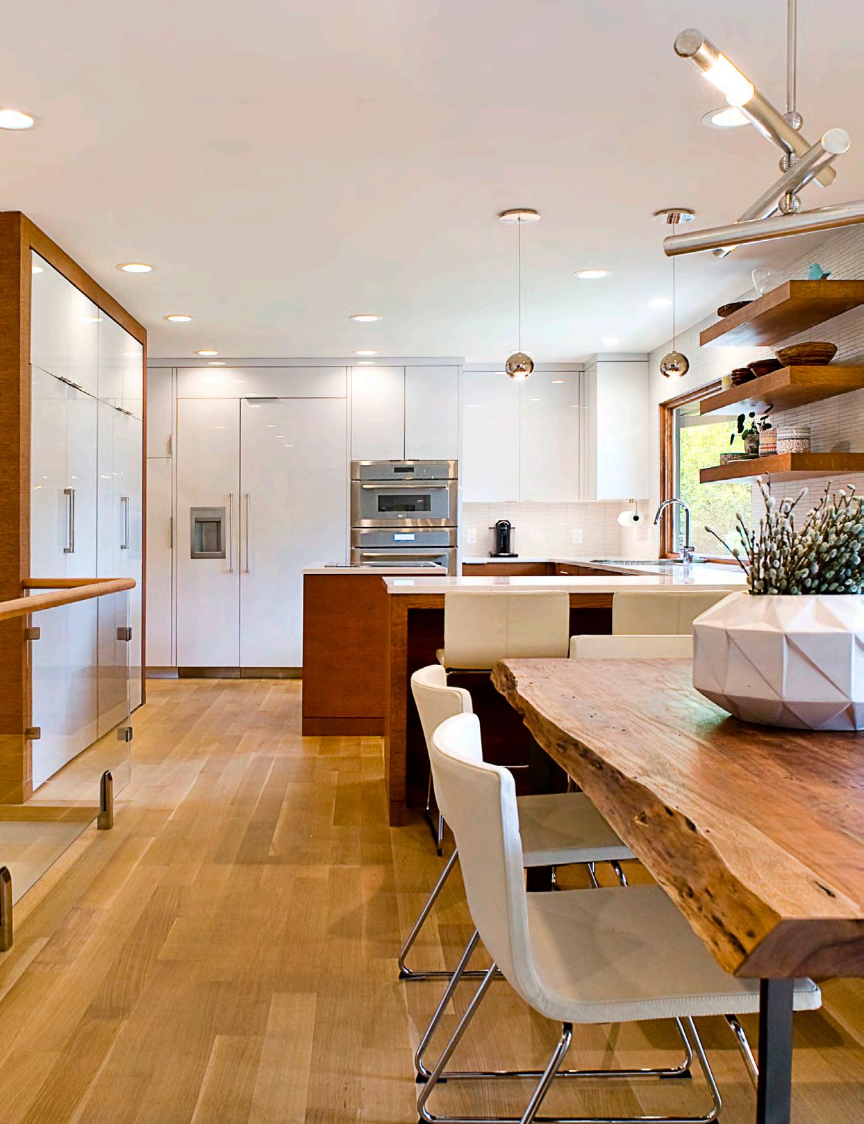 “We see a lot more stairways,” she explains. “We see a lot of glass being used in kitchens for cabinet doors and things like that.”