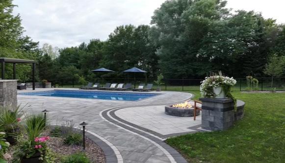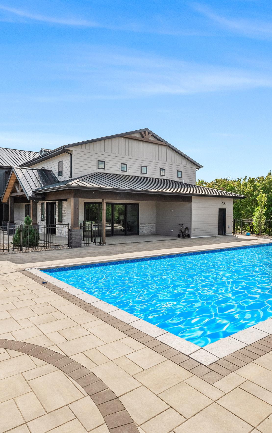 The backyard is a haven for entertaining, with an in-ground pool surrounded by a patio and seating area. The patio includes a gas line for a grill and electricity.
