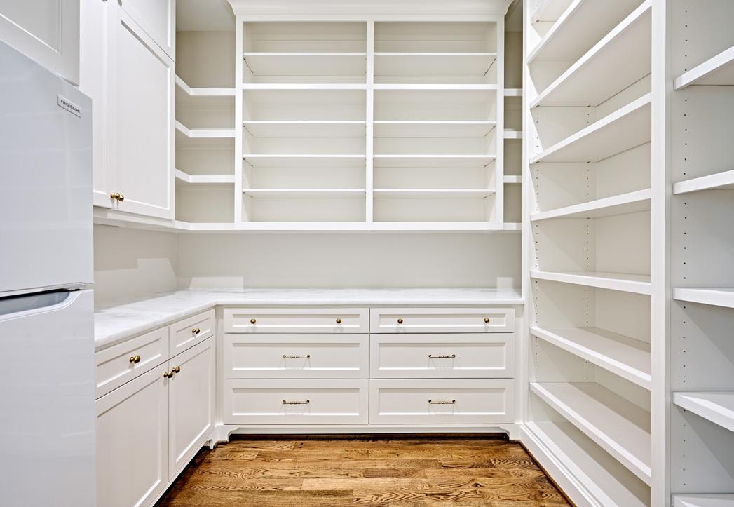 Use creative approaches to optimize space. Extend overhead cabinets to the ceiling to increase capacity and eliminate dust-collecting surfaces. Reevaluate organizational systems. For example, remove countertop knife blocks by installing magnetic wall strips instead. If pots and pans occupy too much cabinet space, install an overhead rack above your kitchen island for easy access.