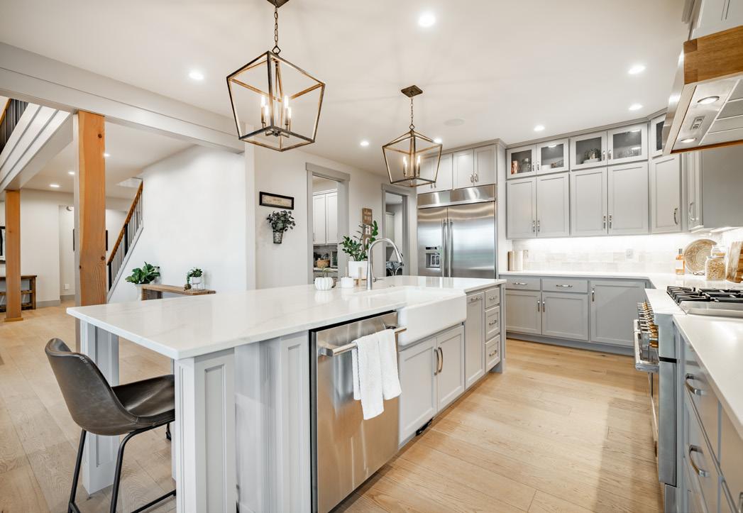 Indoors, the main floor of this 3,146-square-foot home is designed for hosting, cooking, and relaxing.