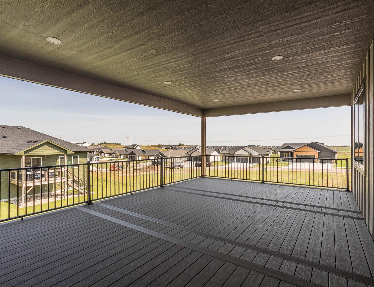 “The deck is very large. It’s great for hosting,” shares Sydney VanWell, construction coordinator for Van Buskirk Companies. “It’s got mounted ceiling lights and outlets for grills, smokers, and whatever you need for hosting large parties.”