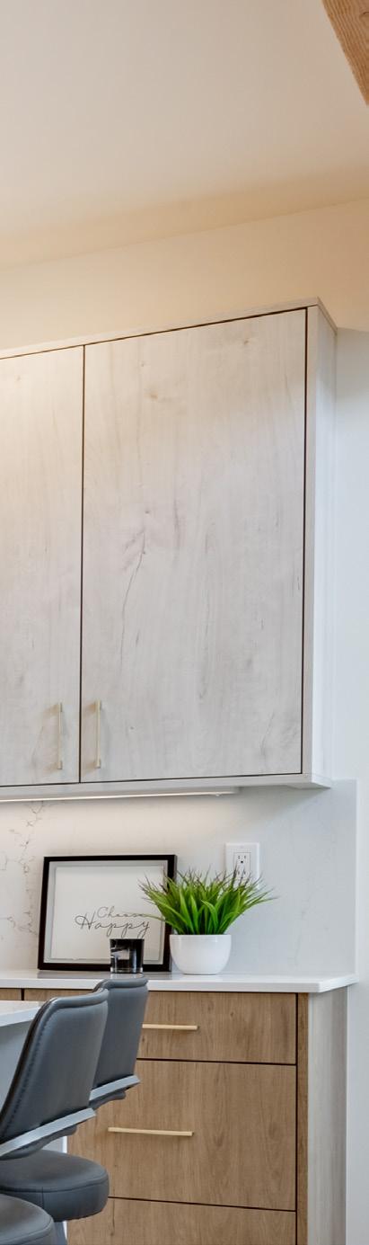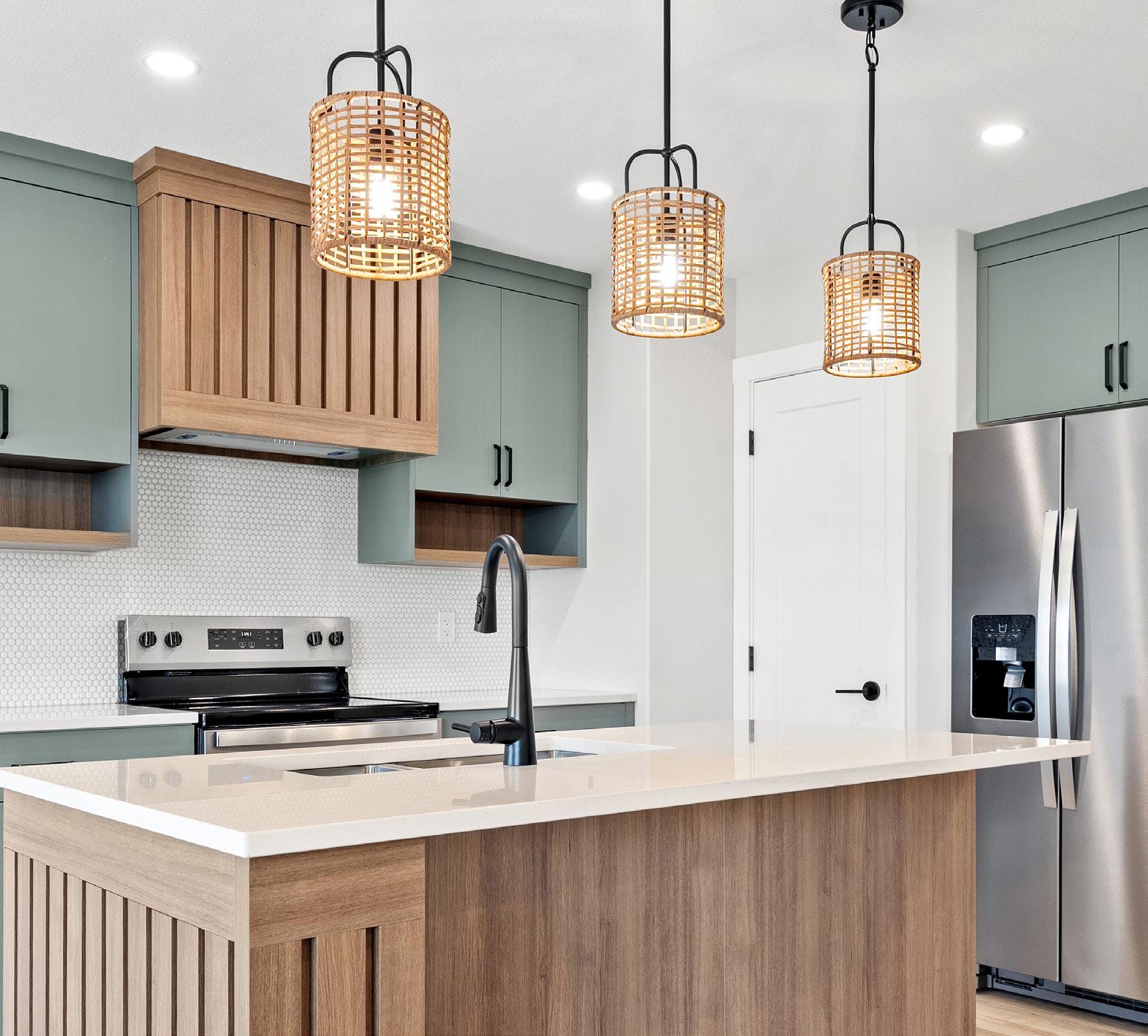 Decorative lighting continues to gain attention, with sculptural pendants, streamlined chandeliers, and integrated LED features adding personality without overwhelming a space. Subtle details such as undercabinet lighting provide function and a refined finish. Outdoors, wellplanned landscape and architectural lighting enhances curb appeal, improves safety, and extends the use of patios and walkways after dark.