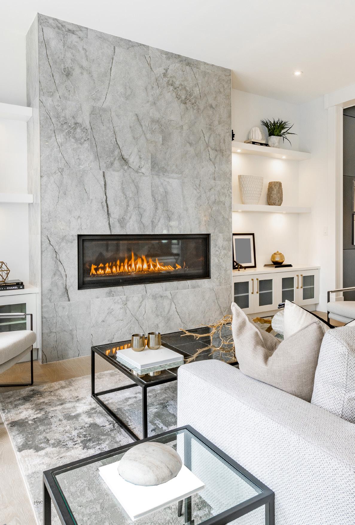 • 75-inch linear professional grade natural gas fireplace with stone surround