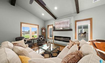 home with upgrades galore from Complete Contracting, Inc. Pella Windows throughout with luxury vinyl plank flooring planned. The spacious kitchen will have soft close cabinets w/ under cabinet lighting, stainless steel appliances, and quartz countertops. Living room is open to dining and kitchen and includes an electric fireplace with surround. The primary bedroom features a large walk-in closet and a private en-suite bathroom. The primary bathroom includes a double vanity, tiled walk-in shower and in-floor heat! In addition, there’s a storm shelter and a security system included for added peace of mind. Garage has EV outlet, floor drains, and H/C water hookups. There is a 12” concrete wall in between units for sound proofing! Large covered private patio with a backyard that has footings for future buildout. Builder is offering a one-year warranty with purchase. Weller Brothers Landscaping is offering a monthly lawncare and snow removal package at $245 per month plus tax.