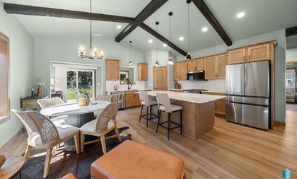 All photos are “similar to.” New Construction twin home on Hole #9 of The Lakes Golf Course near Lake Madison. 3 beds, 2 baths, and oversized, fully finished 2-stall garage. In-floor heat throughout the twin home including the garage. Primary suite is large with golf course views, a double vanity, large walk-in tiled shower with two heads and sizeable walk-in closet. The kitchen/dining and living room is an open concept with lots of natural light. Quartz tops throughout the twin home including the bathrooms and kitchen includes tiled backsplash. Six-foot island in kitchen with pendant lighting. Plenty of storage throughout with cabinets in the mudroom off the garage and in the laundry room along with closet organization in all closets. There is a slider off the dining room to a covered patio with great views of the hole number 9 fairway. Anderson windows throughout. LVP flooring everywhere except bedrooms. Cedar ceiling in entryway and ceiling on the covered patio. Lawn will be seeded and includes underground sprinkler and rock around the home. The HOA takes care of streetlights and includes a community park with a play system, sand volleyball, pickleball, a dock on Round Lake and a shelter for only $150 a year. The roads are maintained by a Road District for $600 a year that is assessed through property taxes. Still time to customize some finishes. Call Now! 23748 461a