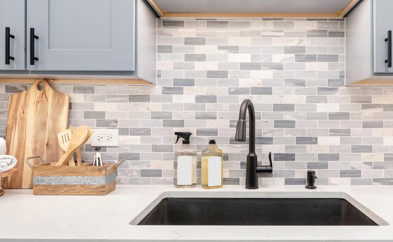 A great finish matters. Lighting and decorative elements emphasize the style of an interior and can add a personal touch. Although they seem minor, they actually strongly influence how a room is received. In the kitchen, two types of lighting deserve attention: a general hanging lamp and smaller spotlights above the cabinets. This arrangement ensures ideal conditions for meal preparation. Metal wall art is an interesting detail that can add a modern touch to interior design. Tiles come in a wide variety of styles, allowing each person to choose what suits them best.